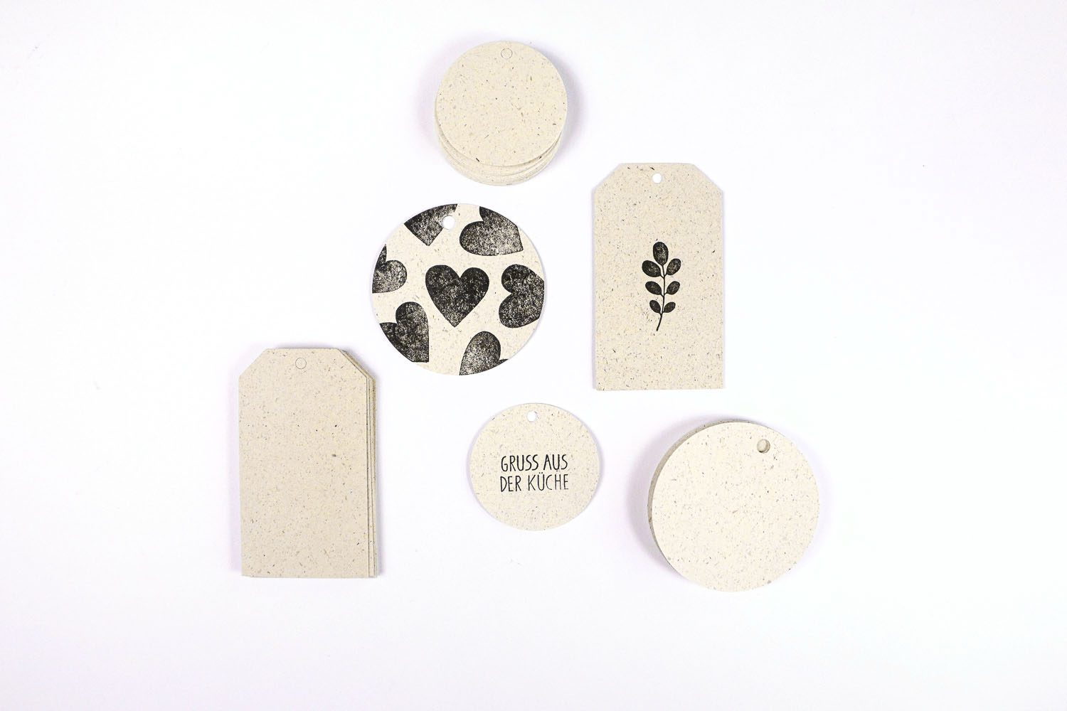 10 Geschenkanhänger aus kräftigem Graspapier für die Dekoration von Geschenken und zum Basteln.
