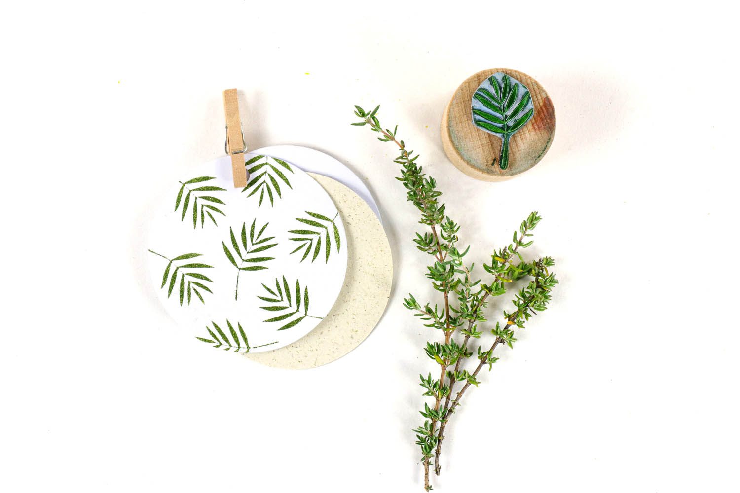 Wie alle Motivstempel von STUDIO KARAMELO basiert auch der kleine Palmwedel auf einer handgezeichneten Tuschezeichnung.