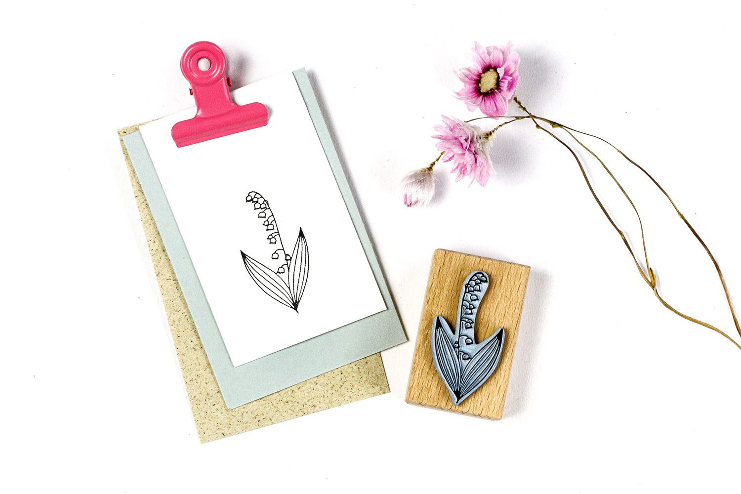 Motivstempel mit zartem Frühblüher: Ein Maiglöckchen zum Stempeln deiner Frühlingsgrüße & Osterkarten. Mit dem handlichen Holzstempel mit Blumenmotiv kannst du ganz einfach schöne & kreative Osterdeko gestalten, Grußkarten & Geschenkpapier stempeln, Tischkärtchen verzieren, Geschenkanhänger und natürlich auch Stoff bedrucken.