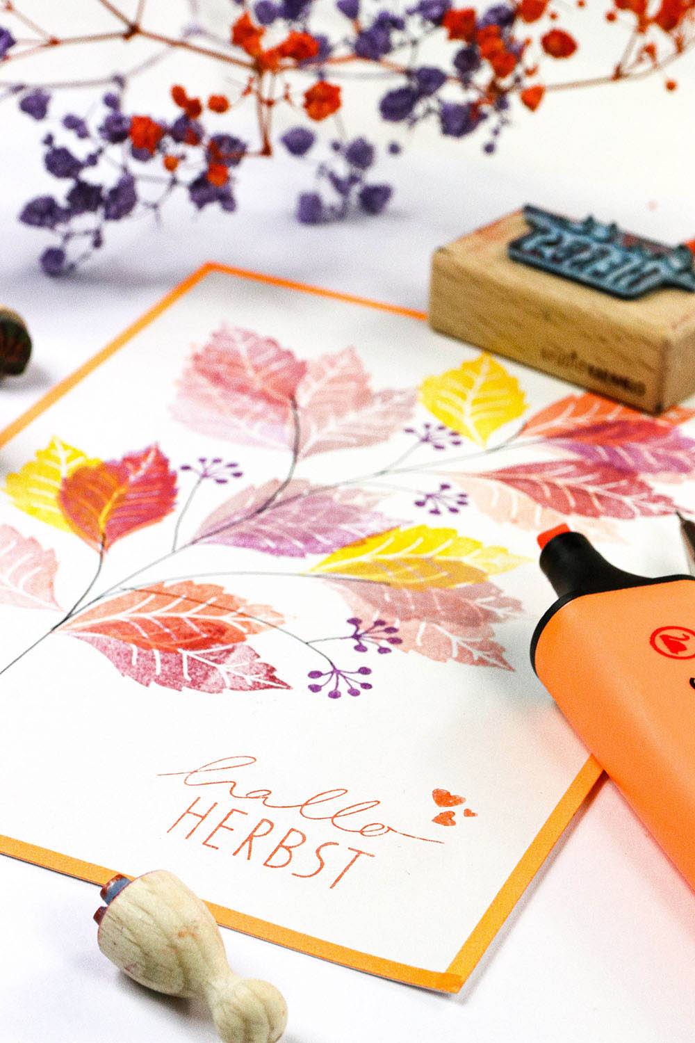 Herbststempel wie Hallo Herbst, das Pflaumenblatt und den kleinen Beerenstempel