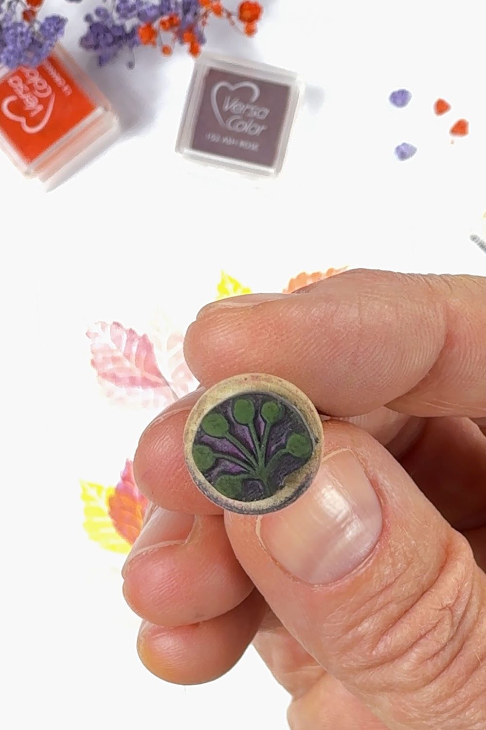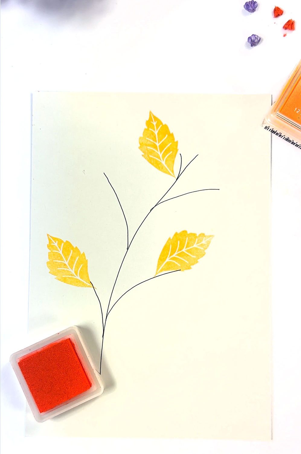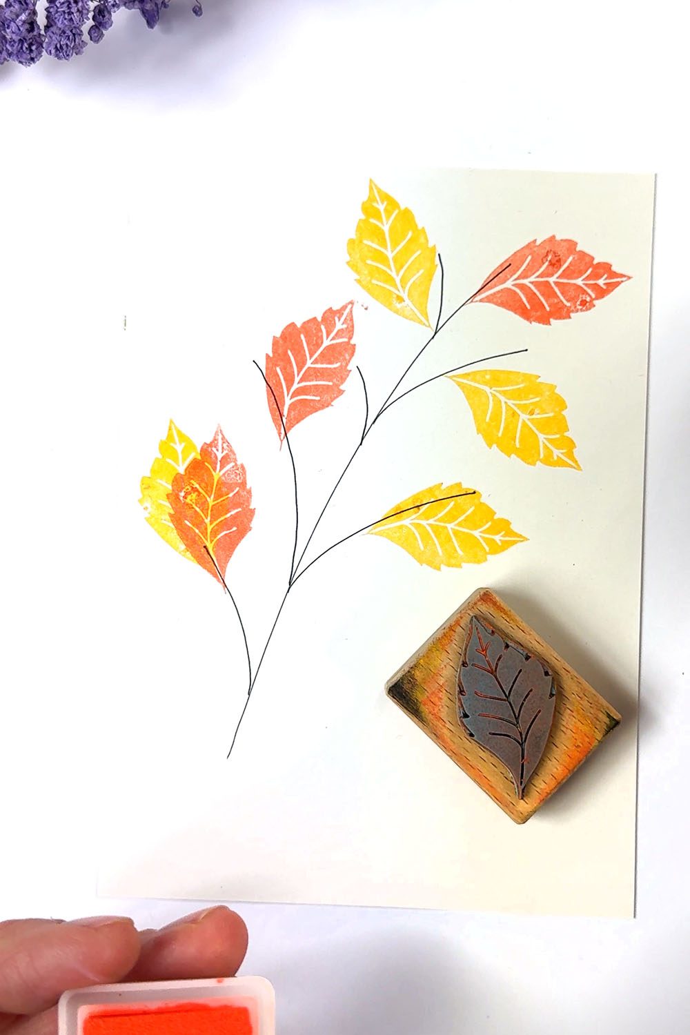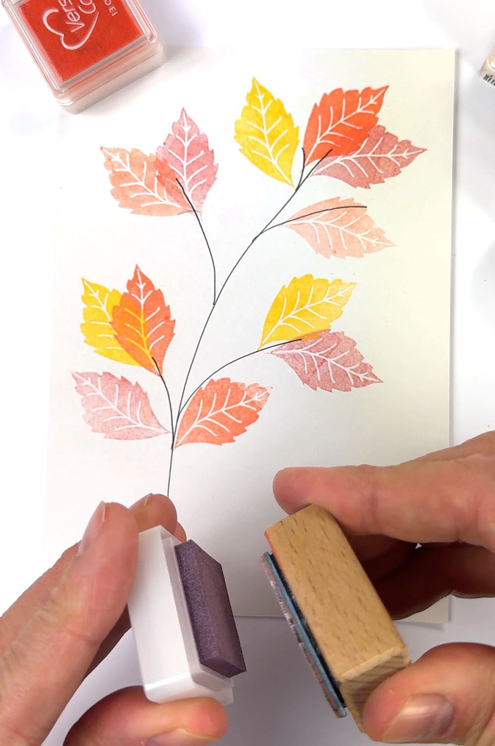 Mit unseren tollen herbstlichen Stempelfarben & Fantasie kannst du dir ganz easy einen hübschen Zweig mit bunten Blättern stempeln.