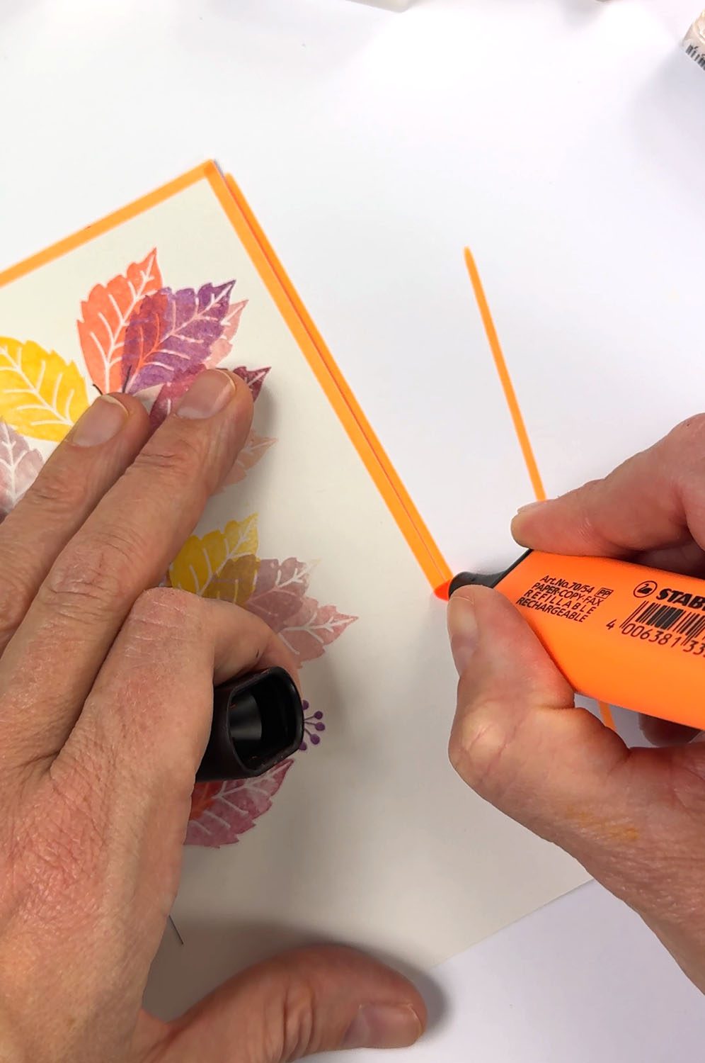 Schnapp dir dann den Textmarker, lege ein Schmierblatt unter deine Karte und ziehe mit dem Marker einen leuchtenden Rand um deine Karte.